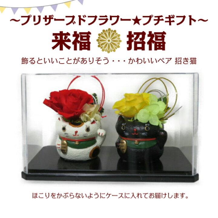 楽天市場 招き猫 まねきねこ 枯れない花 縁起物 プリザーブドフラワー アレンジ 誕生日 プレゼント 花 バラ 還暦 米寿 喜寿 結婚 記念日 お祝い 開運 風水 商売繁盛 和風 ちょこっとプレゼントに 花アトリエ サムシングブルー